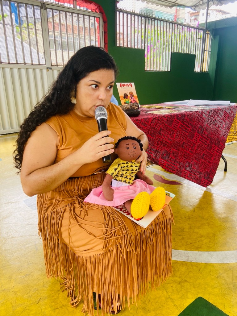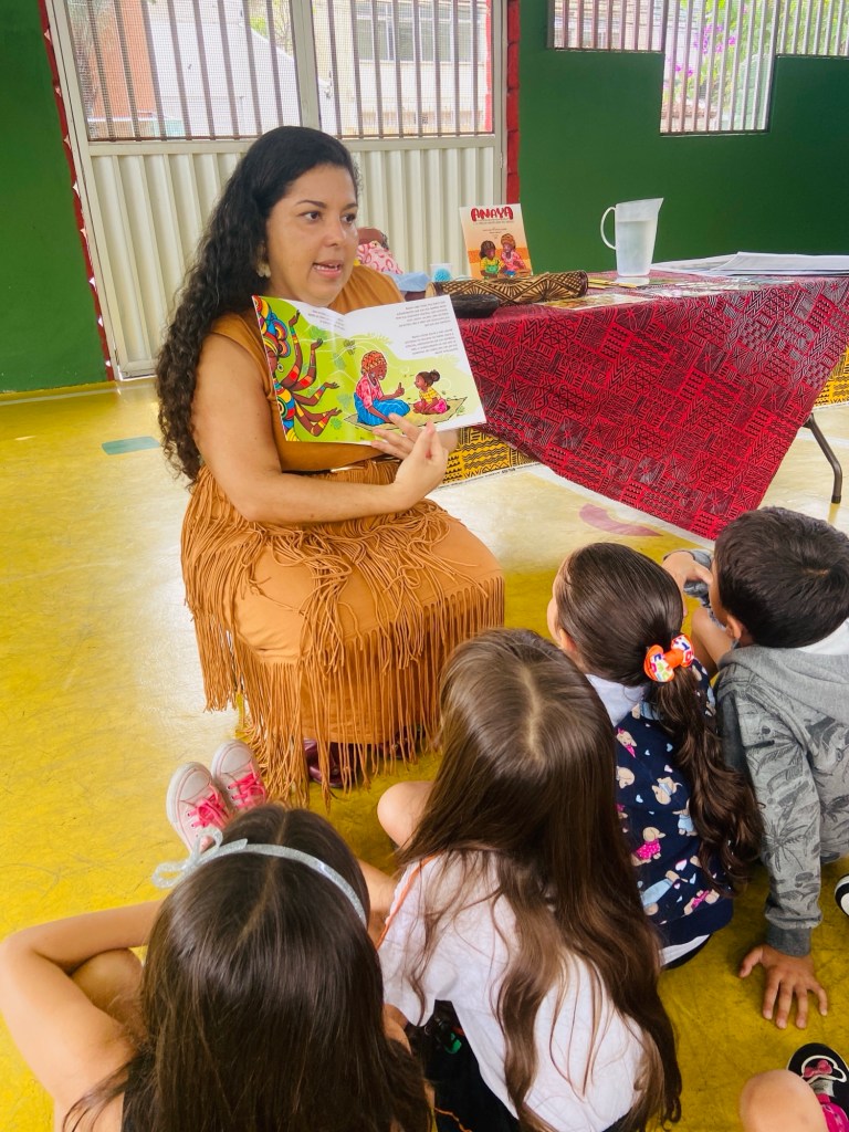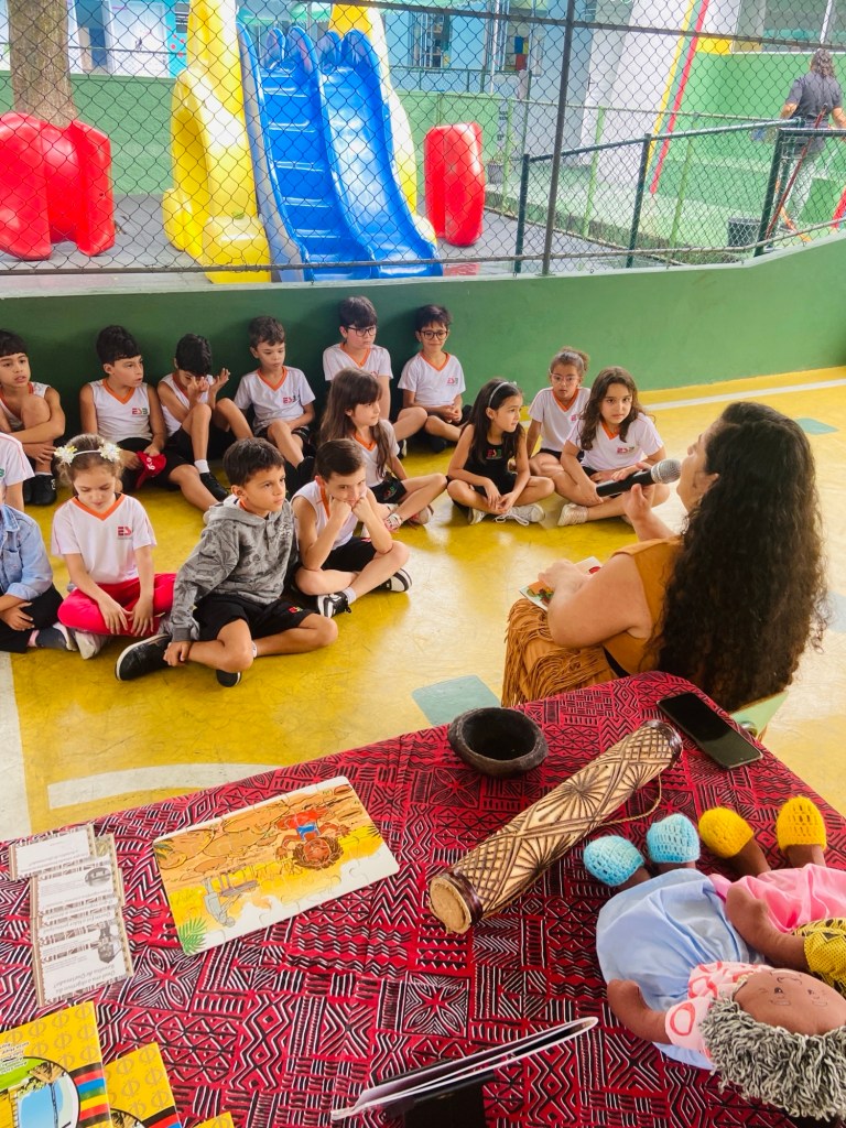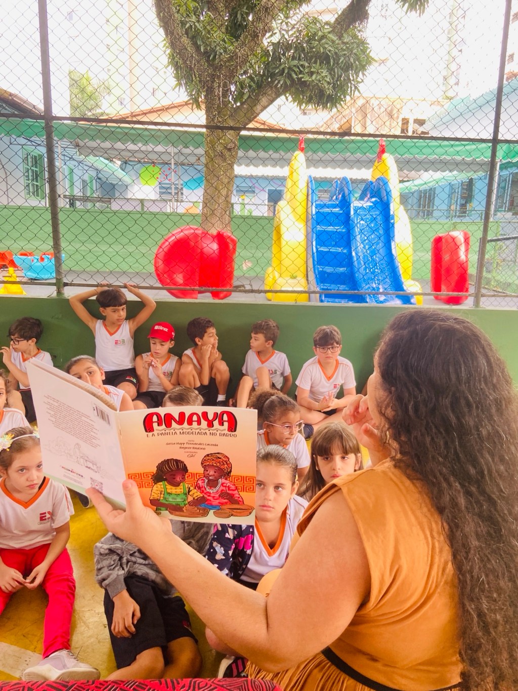 No dia 13 de novembro, tivemos o prazer de receber a professora Geisa Hupp Fernandes Lacerda, escritora e especialista em literatura infantil, para uma atividade inesquecível. Ela nos presenteou com a contação de história do seu encantador livro “Anaya e a Panela de Barro”, uma obra que sensibiliza crianças de diversas idades com sua narrativa rica e ilustrações vibrantes. O livro traz mensagens profundas sobre pertencimento e identidade, conectando as crianças à valorização das tradições e cultura afro-brasileira.