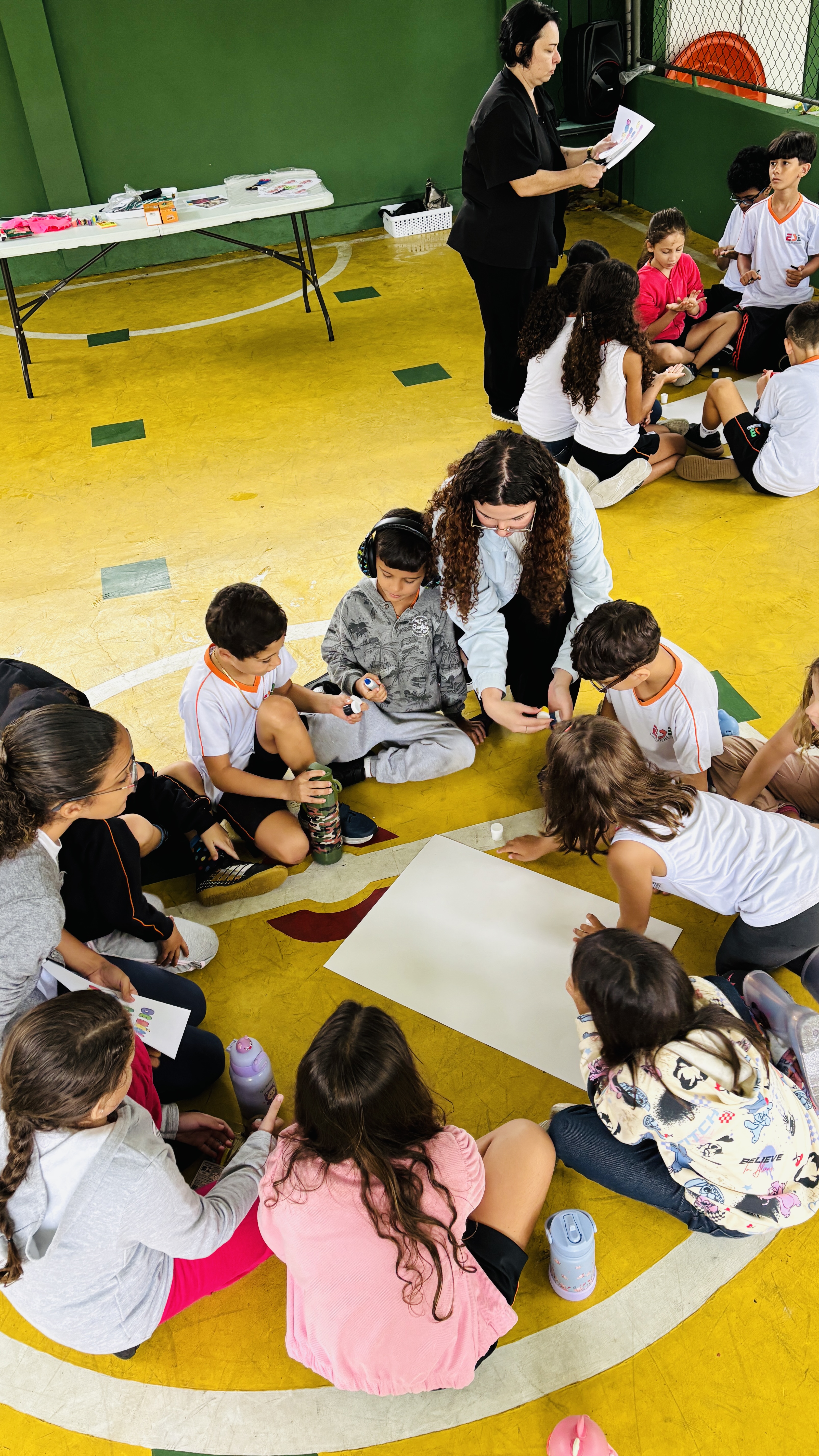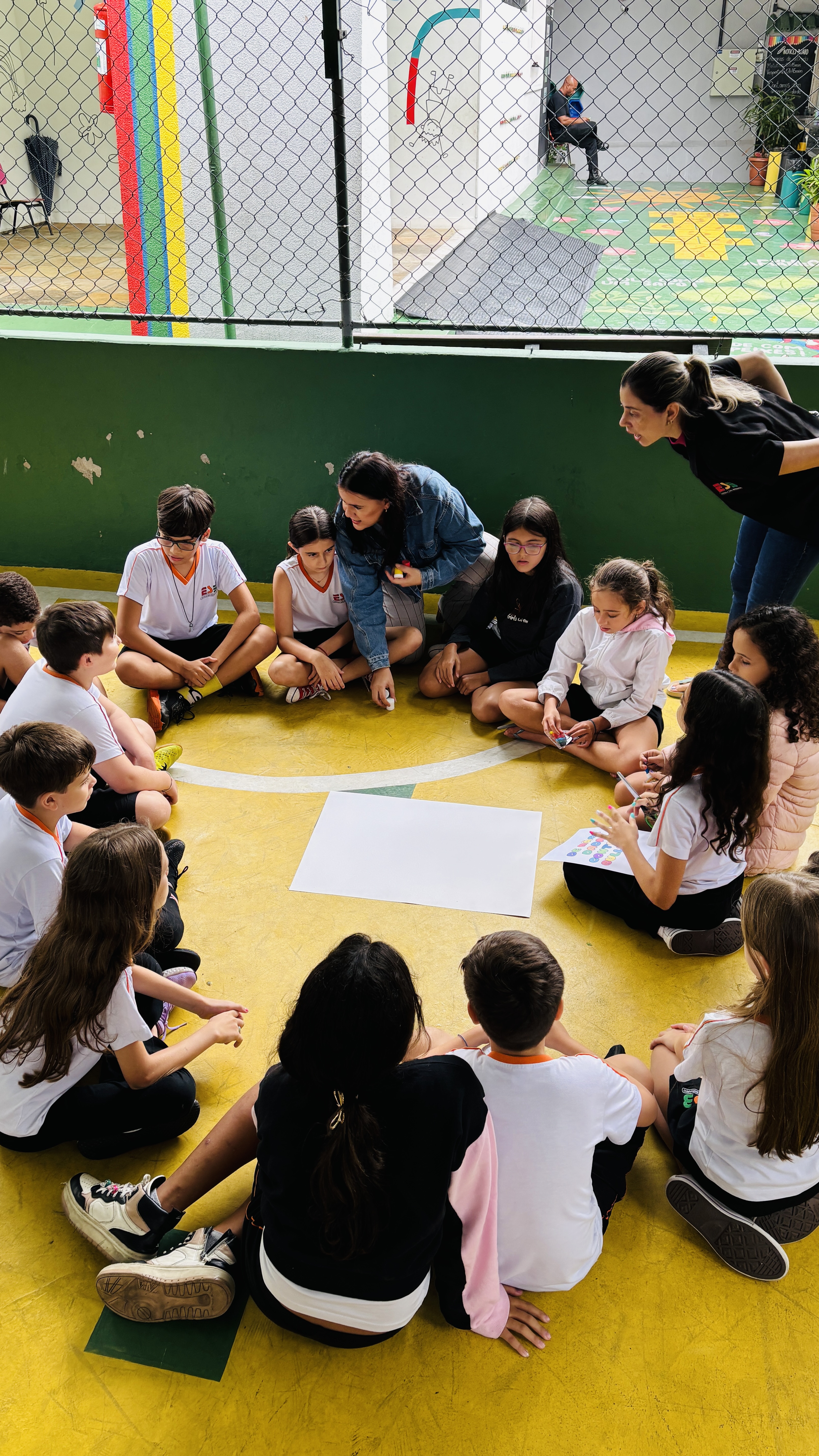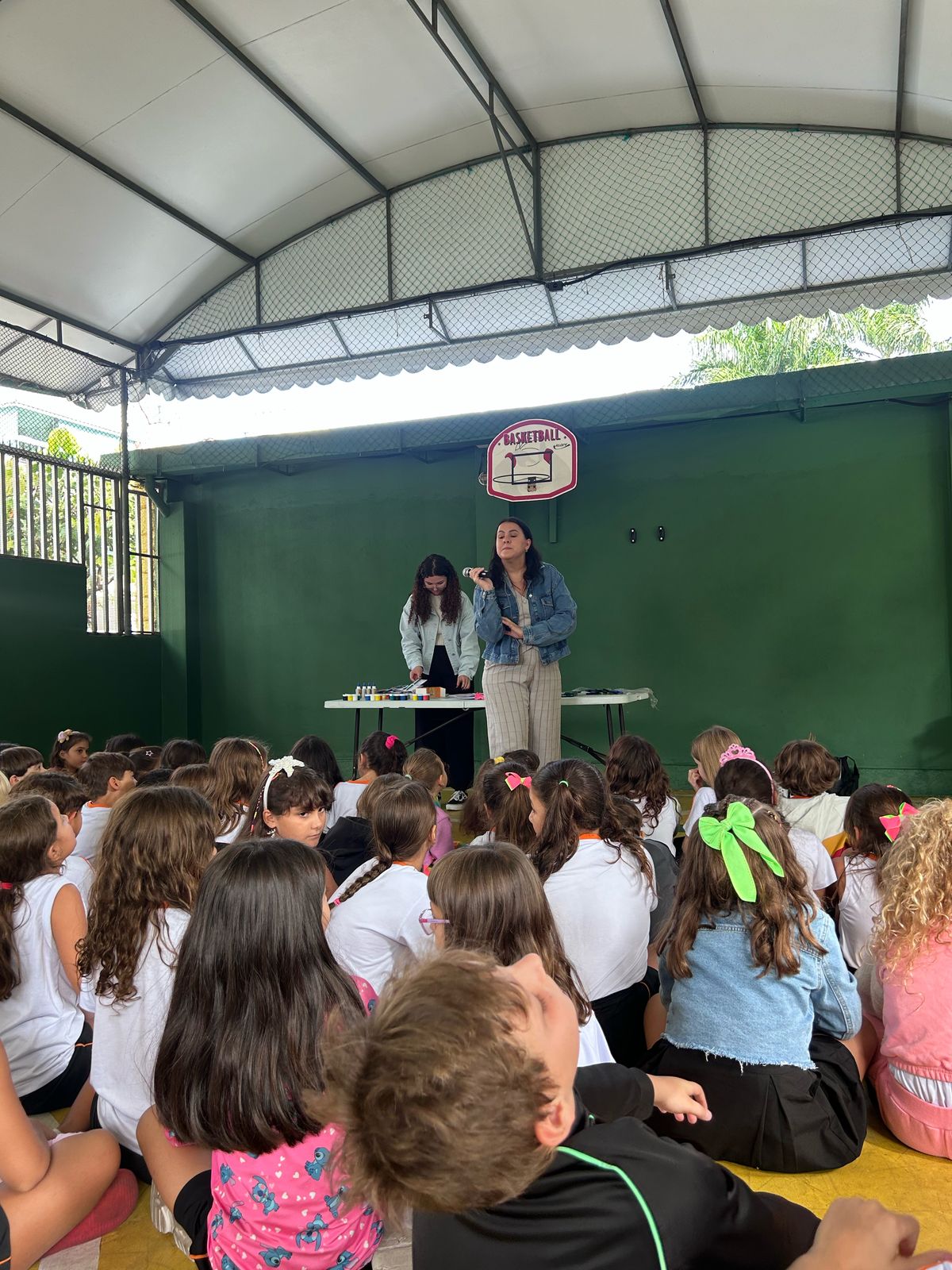 Durante o encontro, Bruna conversou com as crianças sobre o que é bullying, quais são suas consequências e, principalmente, como cada um pode contribuir para um ambiente mais respeitoso e seguro. Os alunos participaram com entusiasmo: compartilharam o que sabiam sobre o tema, deram exemplos de atitudes de apoio aos colegas e ouviram com atenção as orientações da convidada.