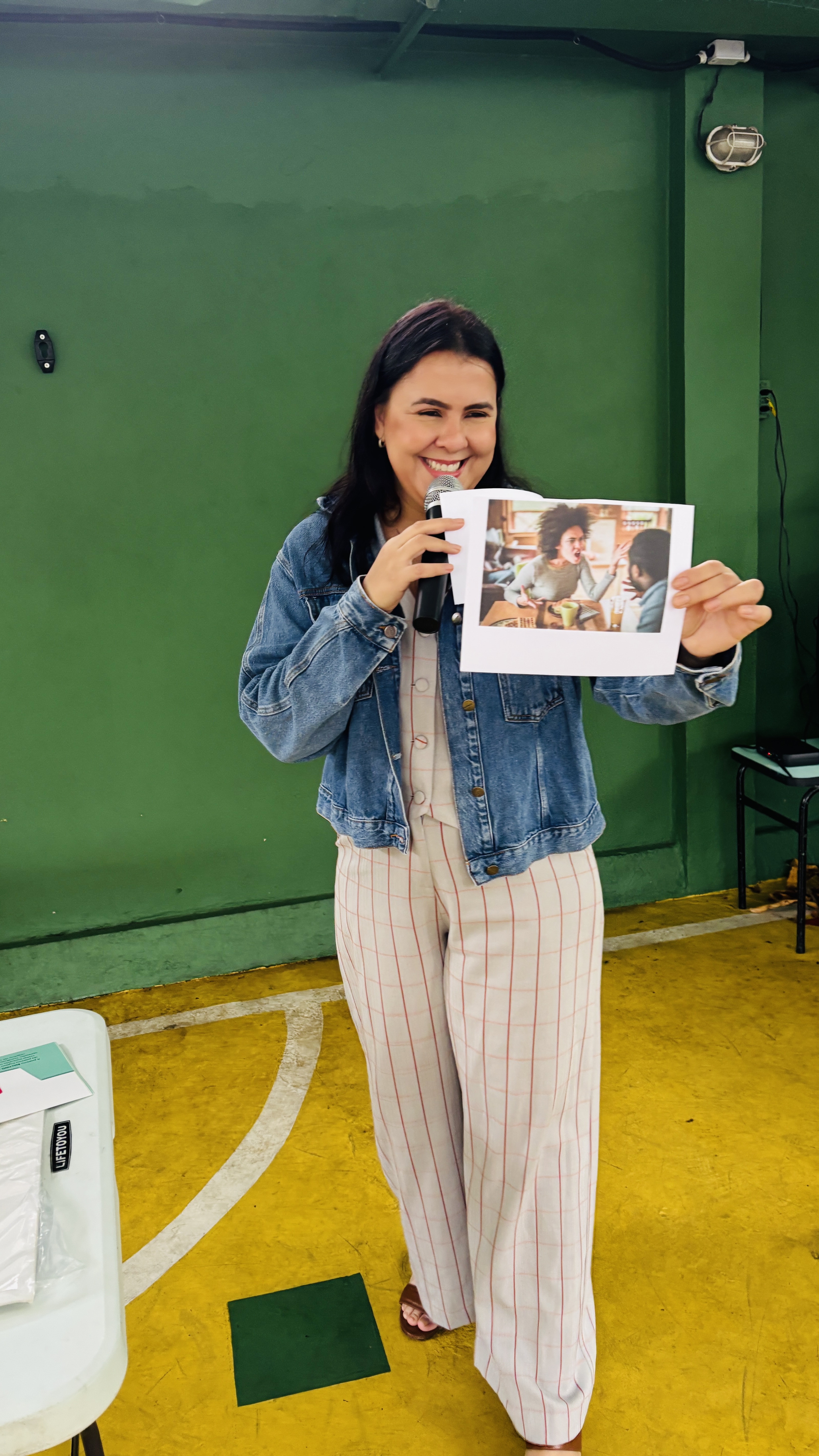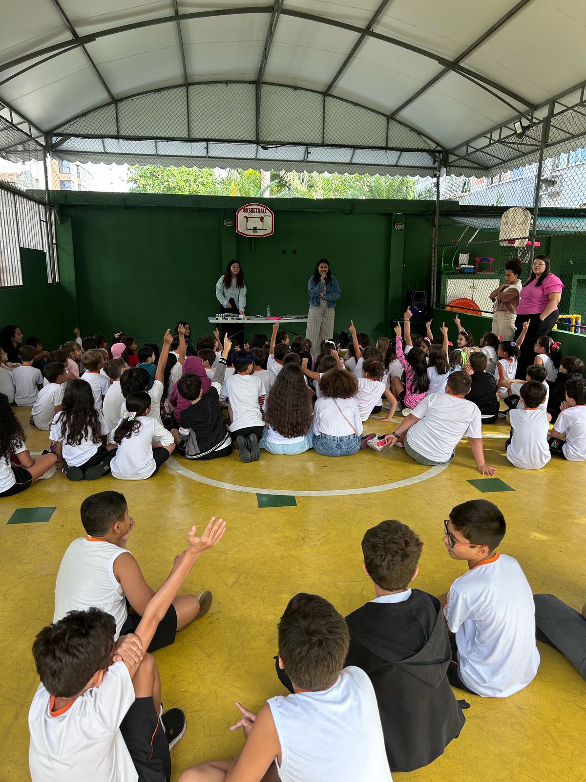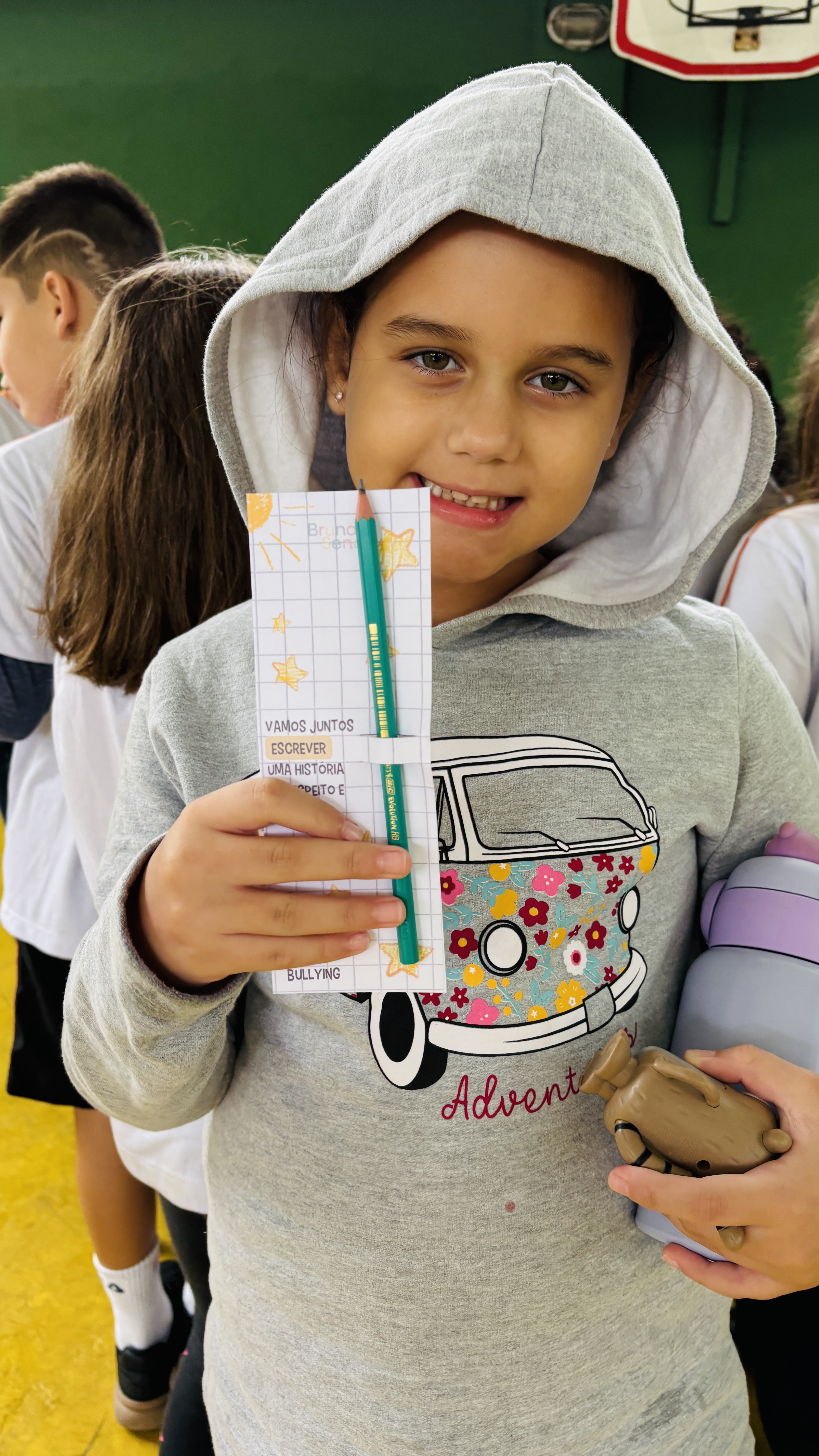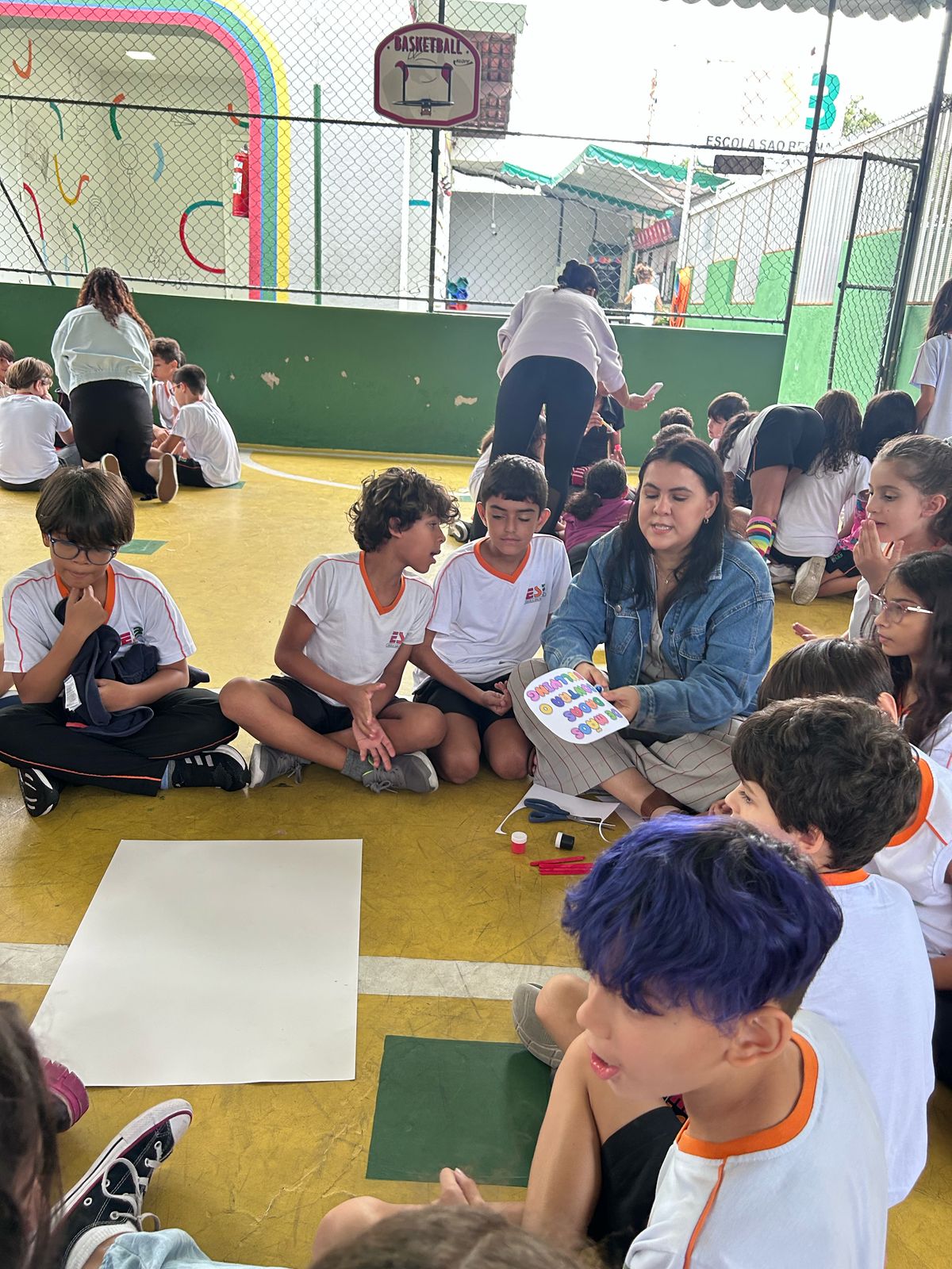 Durante o encontro, Bruna conversou com as crianças sobre o que é bullying, quais são suas consequências e, principalmente, como cada um pode contribuir para um ambiente mais respeitoso e seguro. Os alunos participaram com entusiasmo: compartilharam o que sabiam sobre o tema, deram exemplos de atitudes de apoio aos colegas e ouviram com atenção as orientações da convidada.