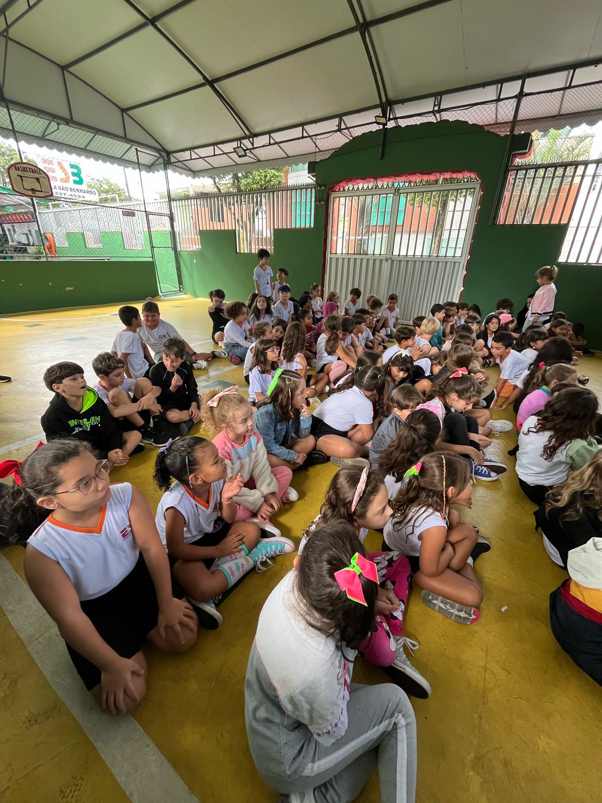 No dia 7 de abril, a Escola São Bernardo celebrou o Dia Nacional de Combate ao Bullying com uma atividade especial que reuniu afeto, escuta e consciência coletiva. Os alunos do Ensino Fundamental participaram de um bate-papo com a psicóloga Bruna Sena, especialista em saúde emocional e comportamento infantil, que conduziu uma conversa leve, acolhedora e repleta de reflexões importantes.