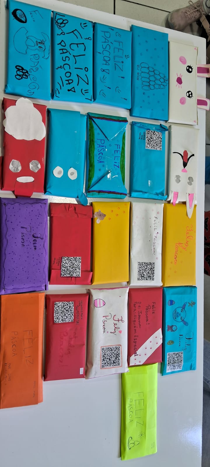 Neste ano, a Páscoa na Escola São Bernardo foi marcada por um gesto de afeto, generosidade e espírito coletivo. Como parte do projeto Páscoa Solidária, as famílias foram convidadas a doar barras de chocolate, que foram carinhosamente decoradas pelas crianças da Educação Infantil e Ensino Fundamental.