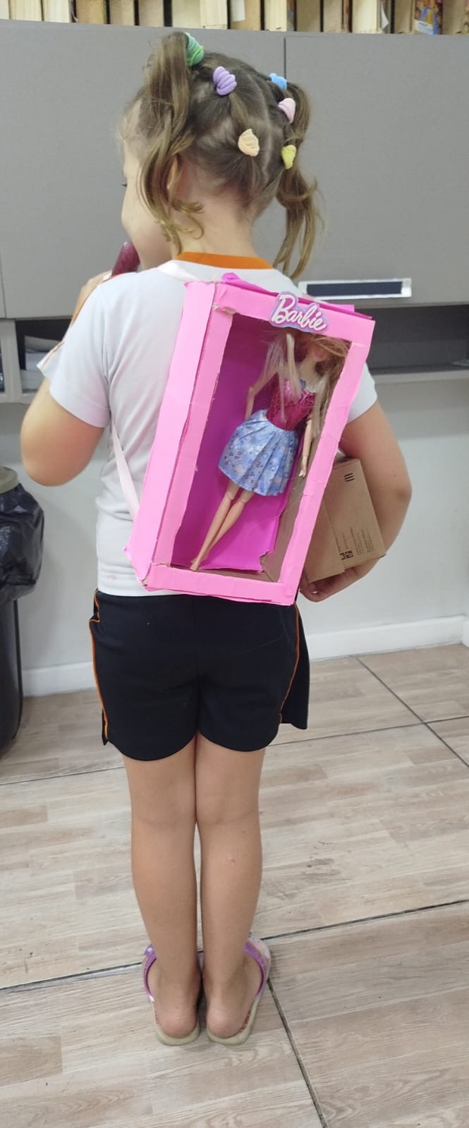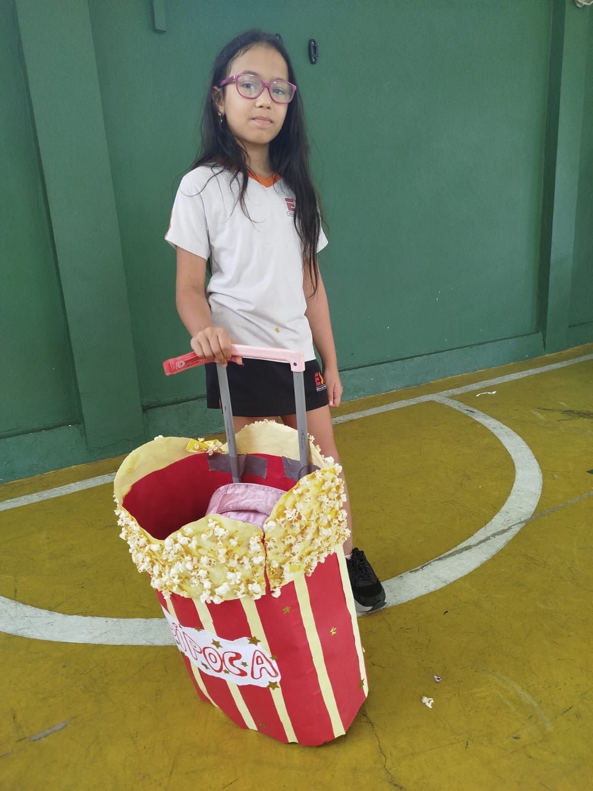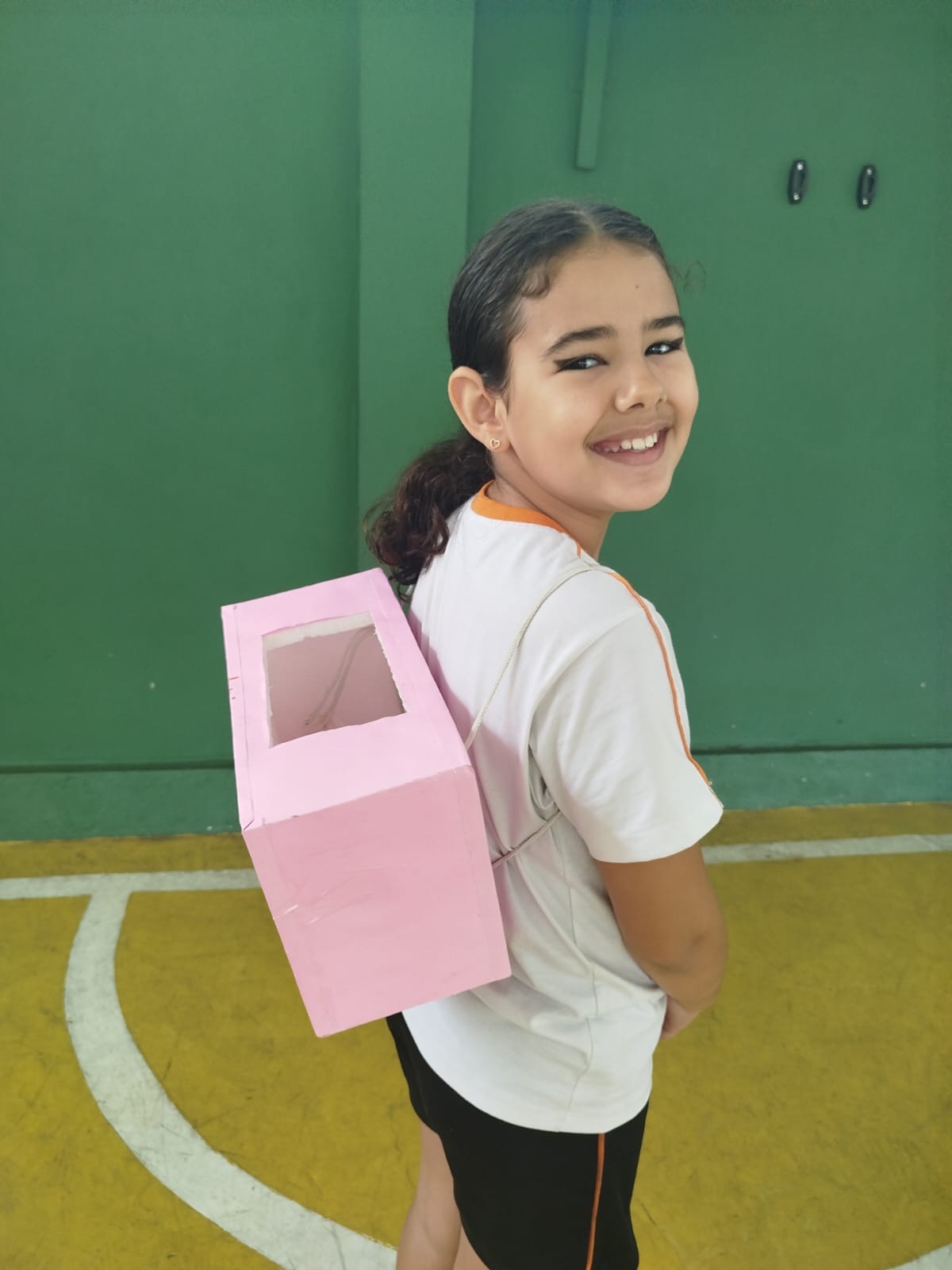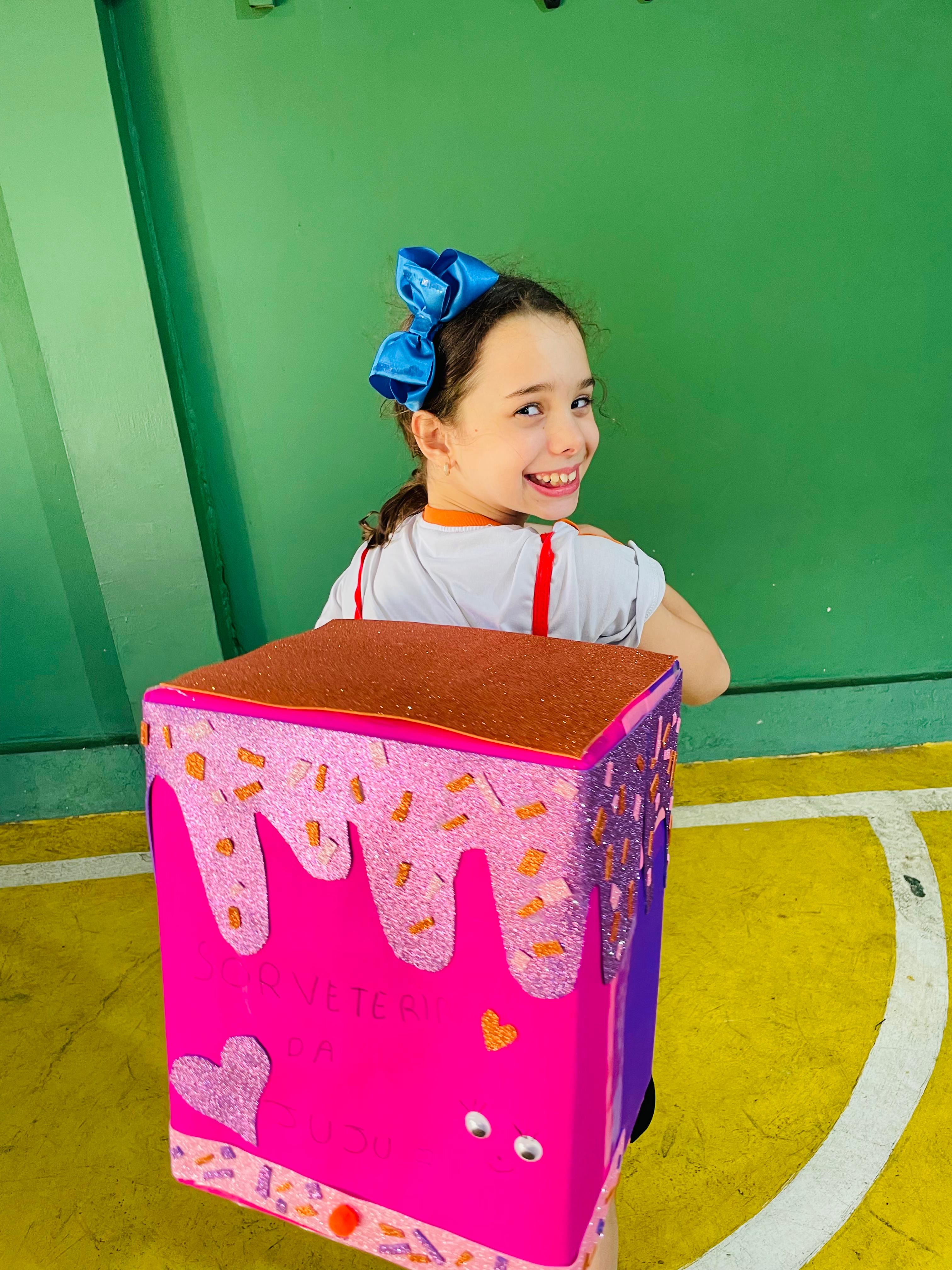 Teve de tudo um pouco: mochila de pizza, penteadeira, boneco, aquário, hambúrguer e até uma com um pintinho de verdade dentro (sim, um pintinho de verdade!). Cada ideia arrancava risadas, encantamento e, claro, muita curiosidade dos colegas.