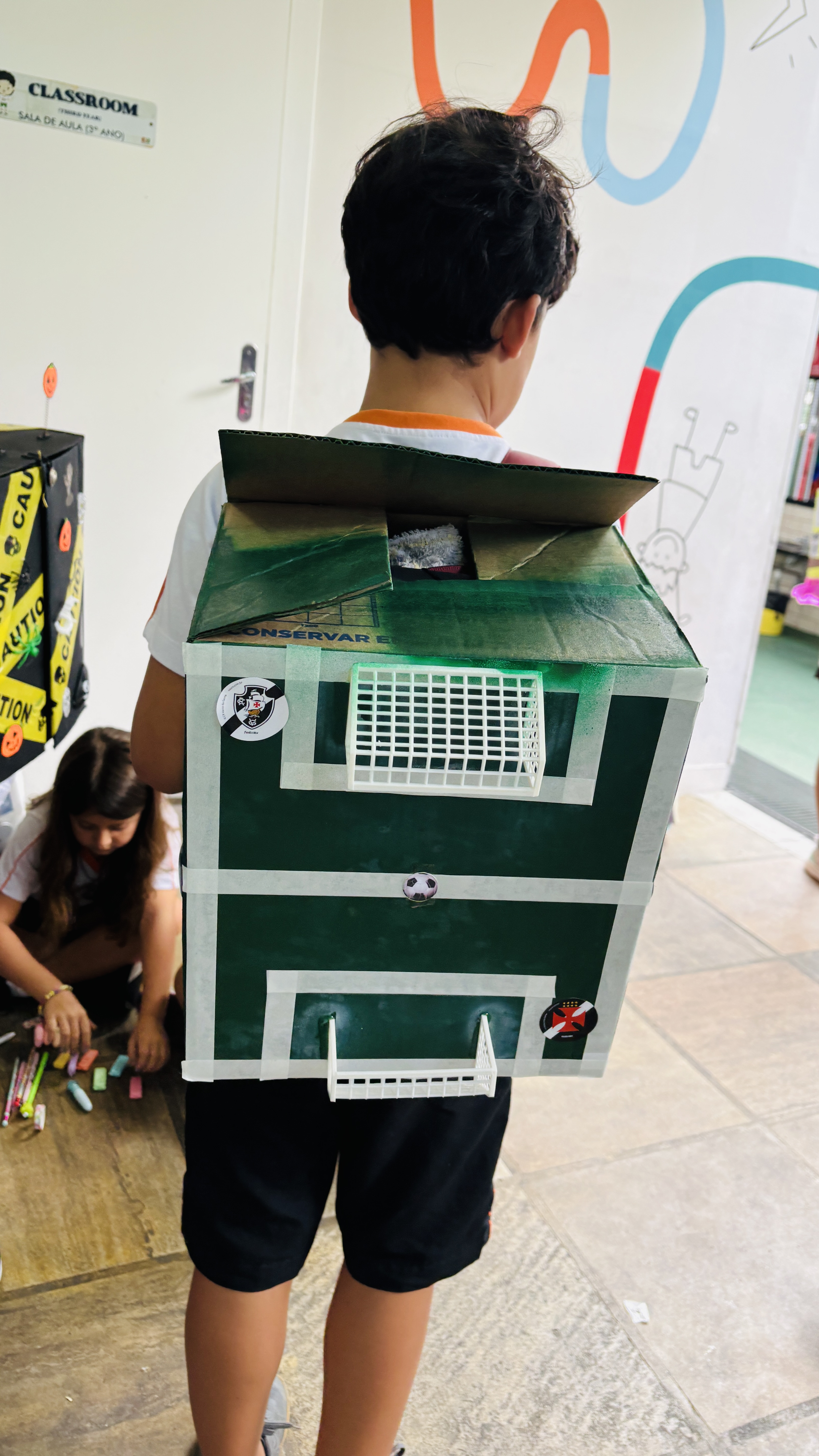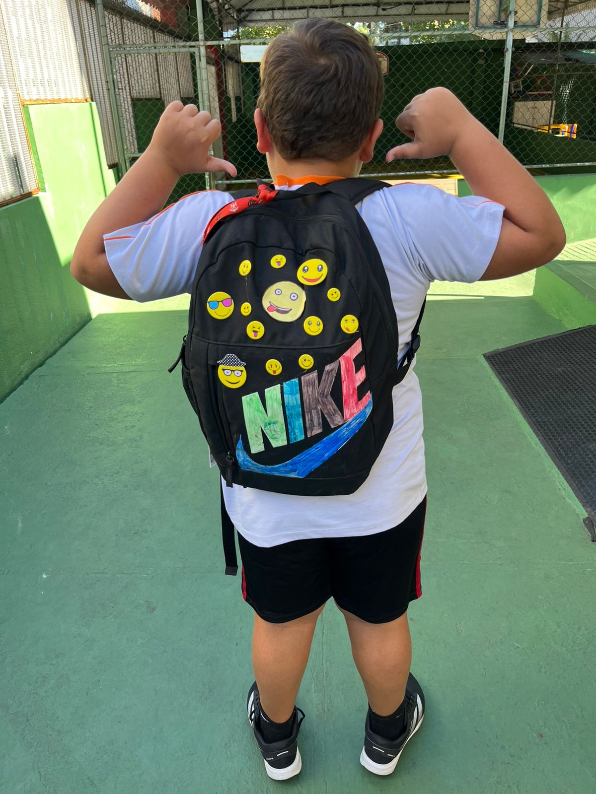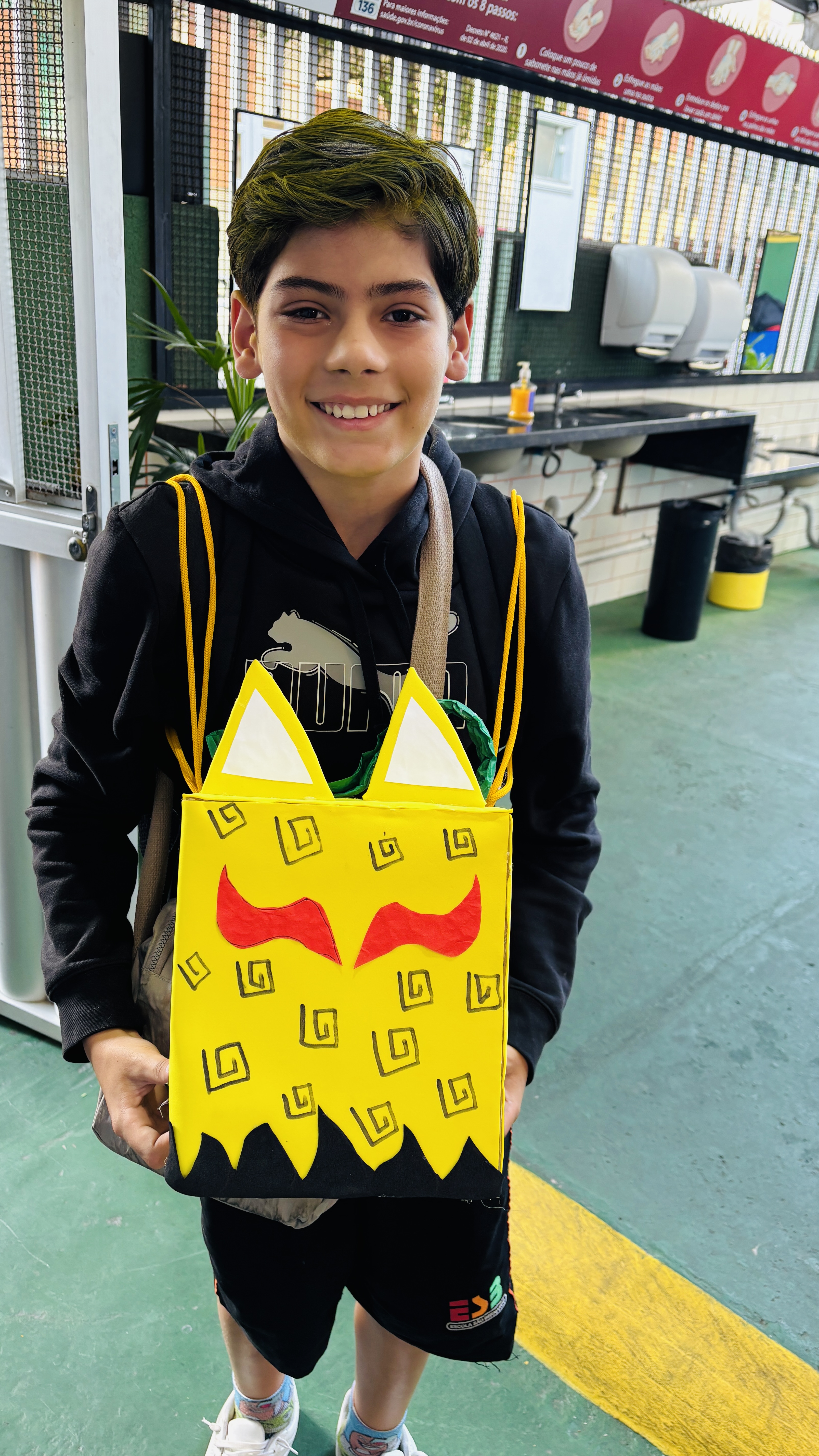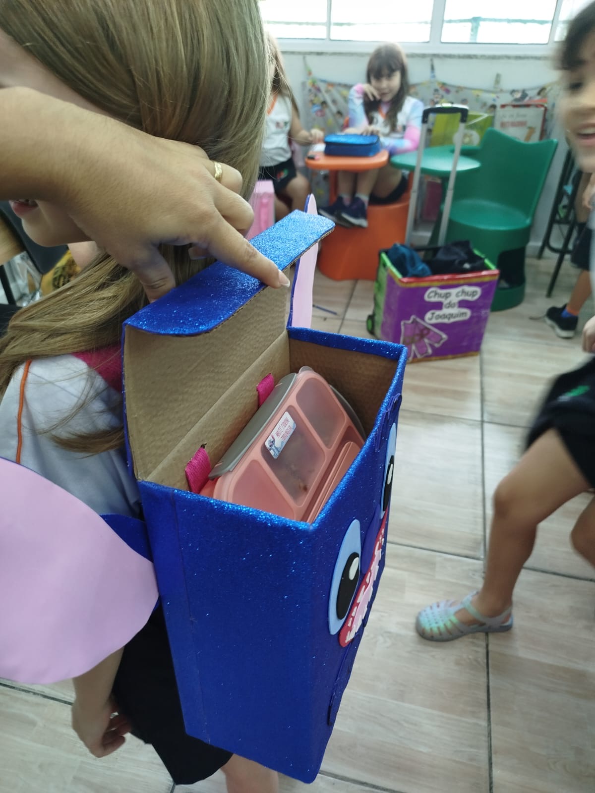 A proposta foi convidar as crianças a criarem mochilas diferentes, divertidas e inusitadas, transformando o momento de vir à escola em uma experiência cheia de afeto, arte e imaginação. A atividade estimula a expressão criativa, o senso de humor e o olhar lúdico sobre o cotidiano, mostrando que aprender também pode ser brincar.