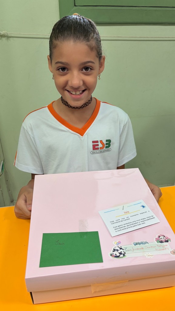 Durante a cerimônia, as crianças foram acolhidas em um ambiente cuidadosamente preparado para esse momento simbólico. Cartas escritas pelas famílias, repletas de amor, incentivo e confiança, tornaram a experiência ainda mais intensa. Entre sorrisos, lágrimas e abraços apertados, cada aluno viveu esse instante de forma única, compreendendo que escrever com caneta também significa assumir novos desafios, amadurecer e seguir avançando no processo de aprendizagem.